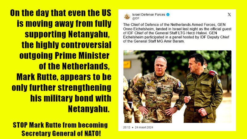 On the day that even the US is moving away from fully supporting Netanyahu, the highly controversial outgoing Prime Minister of the Netherlands, Mark Rutte, appears to be only further strengthening his military bond with Netanyahu.