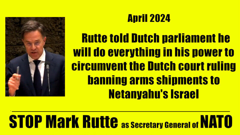 With these (and many other) actions, Mark Rutte and his 'VVD cabinet' are Complicit in Genocide. By retaining Mark Rutte as Secretary General, the whole of NATO is complicit in Genocide. This makes NATO the greatest threat to humanity today. NATO now is our enemy, not our protector.