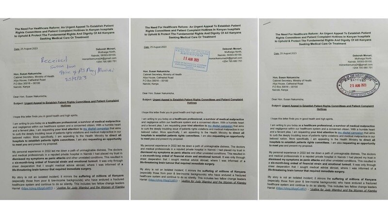 I'm thrilled to update you on our campaign for Patient Rights Committees in Kenyan Healthcare. Your incredible support has brought us to a pivotal moment. So far over 900 people have signed in support of the petition. A letter was recently delivered to the cabinet secretary of health and other decision makers, urging attention to our digital campaign. Your voices are being heard!