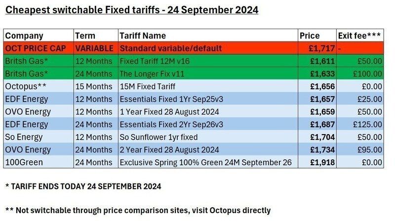 I've also included a link to my Tuesday's Tariffs article from today which shows other tariffs available in the market, including the relatively cheap Octopus 15-Month tariff, and details of 2-year tariffs rather than 12 months. Have a look if you're considering fixing for a longer term.