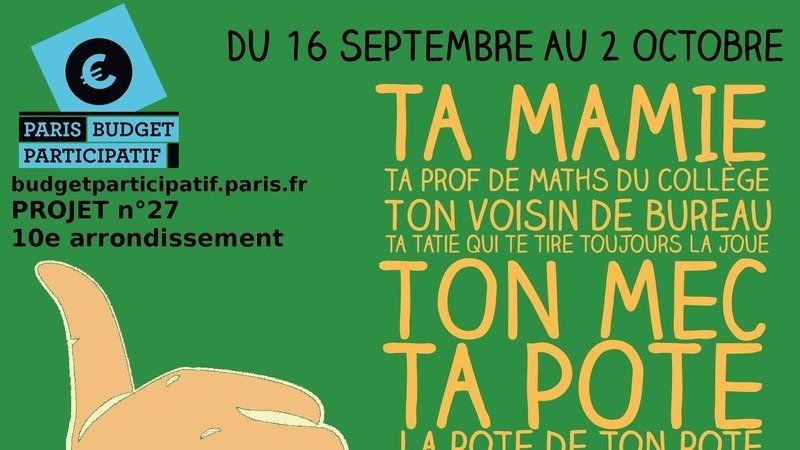 En effet, notre « idée » postée en février sur la plate-forme du Budget participatif, proposant de donner à cette consultation un vrai sens social en assurant le financement de l’aménagement de la « halle » dans le local brut de béton qui lui a été attribuée, figure cette année sur le bulletin dans le 10e arrondissement, où il porte le numéro 27.