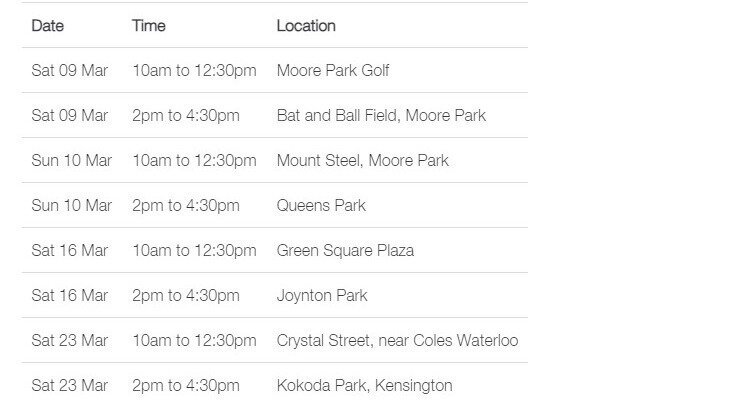 Thank you again for all your support, we now have another ask: Greater Sydney Parklands are holding pop-up sessions (see above dates and times) within Moore Park where you will have the opportunity to discuss the proposal and articulate why Moore Park Golf should be retained as an 18-hole course.