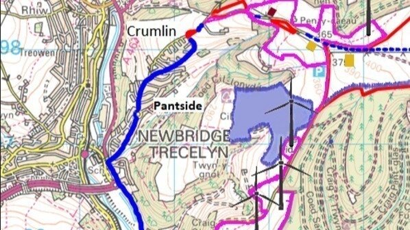 Cil lonydd Solar farm plans include to link up, via cables across our mountain, to the huge Sub Station on the proposed RES Development plans. The Trecelyn 4 turbine wind farm ( + add 4 permanent concrete crane hardstandings for each turbine ) intends to share and add to new road networks across the mountain with RES wind farm.