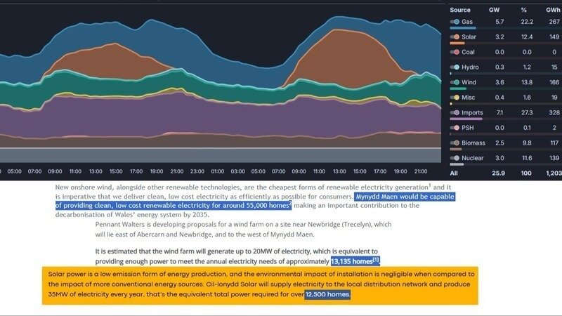 DNS/3279676 - Craig -y- Perchych ( Cyp ) Solar Farm (10MW Developer estimates 5300 Homes) Actual 112 Homes supplied Estimation (@ 80% battery) or 92 Homes if 17% transmission losses were to be Factored in.