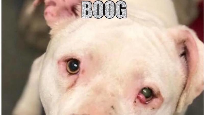 "Boog" 8.5 year old intact male pit bull. 58lbs. He is rescue only due to medical. We are not able to fit full vet notes, rescues interested in pulling Boog please email us for full vet notes. Our vets wrote: 5/03BAR and interactive this AM on walk thru, walked to clinic ambulatory x 4, mild increase weight distribution left hindlimb, pulling on leash, willing to walk/trot and jump up for attention.Two small dermal proliferations left hindlimb. Few papules ventral abdomen/inguinal area.Sedation: Butorphanol 0.2 mg/kg, Acepromazine 0.02 mg/kg IV (adequate sedation achieved).Pelvic Radiographs: Femoral heads well seated with > 50% femoral head coverage, marked right hindlimb muscle atrophy, R femur signicantly shortened compared to left with patella laterally luxated and varus deformity of distal femurStifle Radiographs: R stifle severe degenerative joint disease with significant proliferative changes tibial plateau and femoral condyles FNA: Marked RBC artifact, 3-6 neutrophils phpf, 0-1 mast cells phpf, mixed inflammatory (non-diagnostic - will need continued monitoring vs excision and histopathology).Booger is best suited for a foster based rescue for continued care and management of his orthopedic disease. Strongly recommend an orthopedic consult to discuss possible surgical amputation for more appropriate long term quality of life due to significance of changes observed on radiographs and clinical signs noted on intake exam. Booger will also require senior panel blood work prior to institution of NSAID therapy, and will require cherry eye repair and neuter prior to adoption." His stray hold is up tonight at 7, and he needs pulled by 5/06.