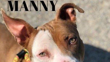 MANNY is a handsome boy that has been placed on the horrible MUST pull euth list for Saturday the 19th. This means MANNY gets no more extensions and will be euthanized at shelter closing. You ask why is he being euthanized? Because of an old injury. An injury with proper management he can live with and that doesn't slow him down!!!