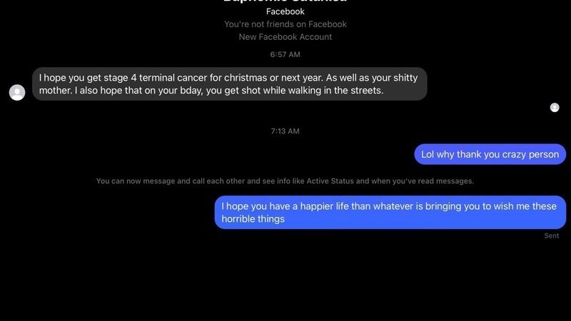 This message came from a random Facebook user who created the account and deleted it after they sent the message, I am being accused of sending this to myself.