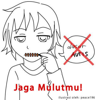 Kata “autis” memang sudah sering kali kita dengar dalam kehidupan sehari-hari terutama bagi kalangan remaja. Namun, kata “autis” ini sering digunakan pada waktu yang salah. Banyak dari kita yang menggunakannya sebagai sebutan terhadap tindakan “bodoh” seseorang. Saya paham ini hanya sebagai bahan bercandaan. Tapi perlu diingat, kita tidak tahu apa perasaan mereka yang memiliki saudara autis jika mendengar kata itu sebagai guyonan. Kalian bisa bayangkan jika kalian ada di posisi mereka.