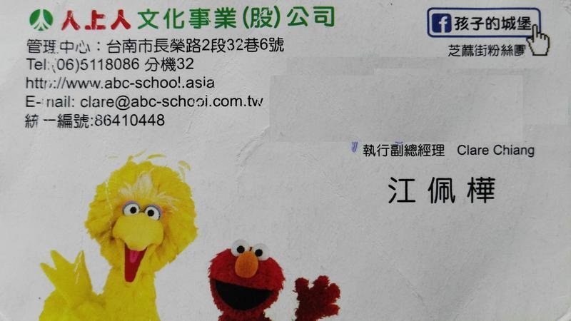 名字在合同頂部:芝麻街教育機構_人上人文化事業股份有限公司(凱仕蘭; Kidsland)