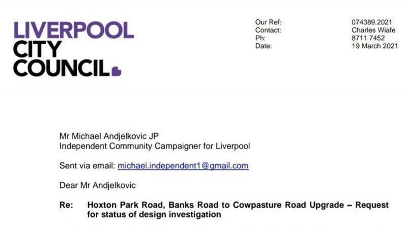 I refer to your email of 13 March 2021, seeking an update of the Transport for NSW (TfNSW) proposed Hoxton Park Road upgrade from Banks Road to Cowpasture Road.
