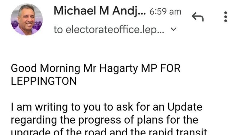 I have sent an email to both Mr Nathan Hagarty MP for Leppington requesting an update on the progress regarding the Fifteenth Ave upgrade.
