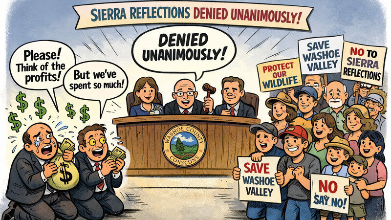 On Tuesday night, the Washoe County Planning Commission unanimously denied the Sierra Reflections project.