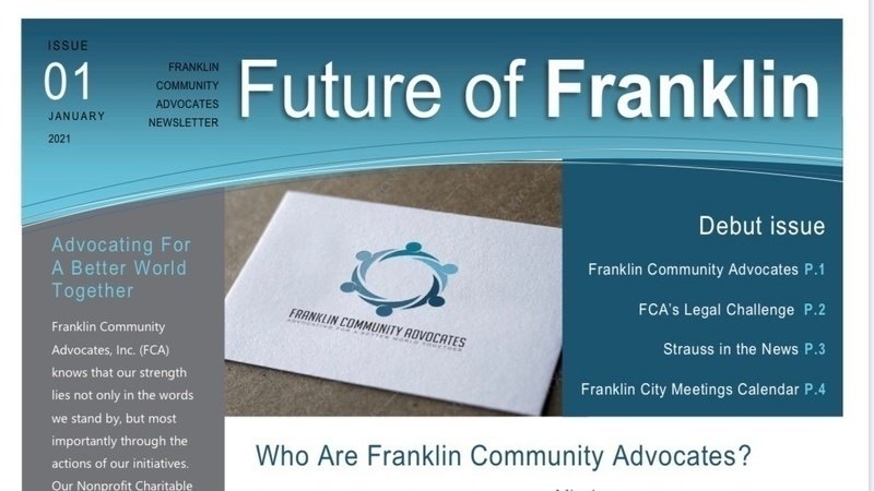 Our debut issue of Franklin Community Advocates Newsletter is now available for viewing and download on our website at: