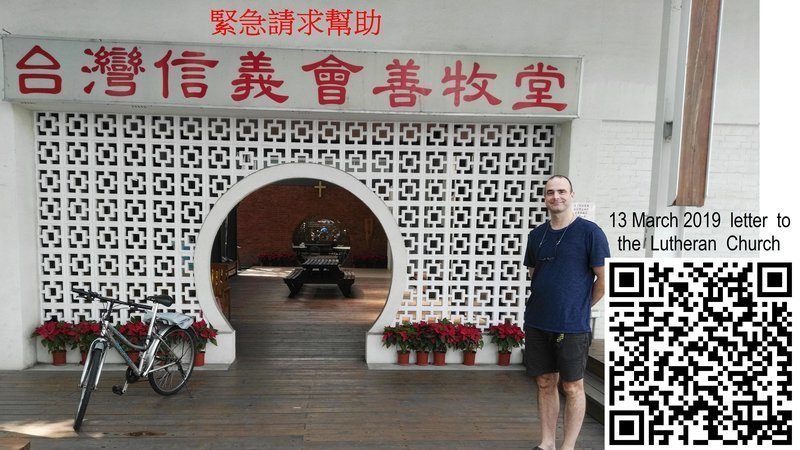 On 10 March 2019, I had the pleasure of meeting you a second time. I specifically asked you for help. I told you that I didn't know what kind of help The Taiwan Lutheran Church is willing, or able, to provide me. I am asking you to help me understand what assistance I am permitted to ask of your church. Normally, this is described in The Articles Of Incorporation of your church. I am certain that you will also find the information that I request in other places as well. As Lutheran church minister, you must be more aware than I could possibly be of assistance that your church is willing to offer a helpless person.