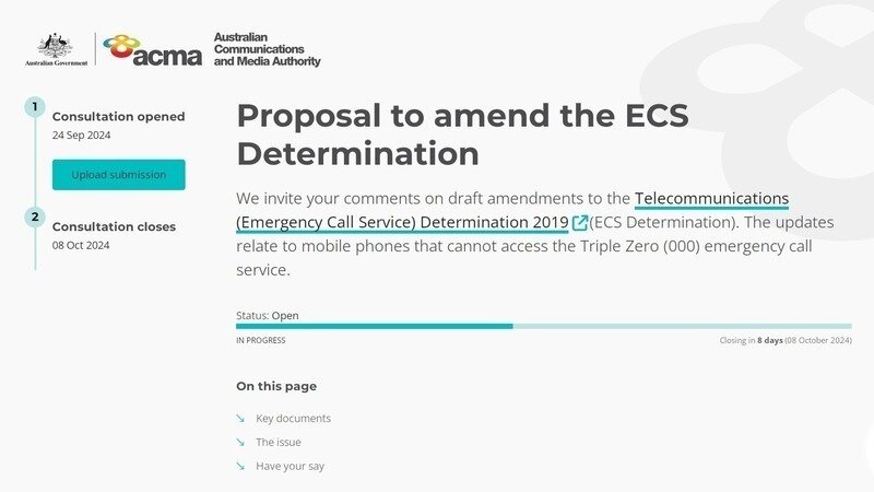 The purpose of this email is to let you all know that the ACMA (radio/mobile regulator) has opened an Online Submissions page for Public Consultation on the Triple Zero calling rules changes they've been instructed to make by the Minister.