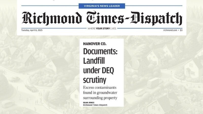 Today's front page article of the Richmond Times-Dispatch confirms what many of us have feared—the Virginia Department of Environmental Quality (DEQ) has been warning the Ashcake Road Landfill about groundwater contamination, yet we’re still left with far too many unanswered questions. As Hanover residents, we're concerned and frustrated by the lack of transparency around what these reports mean for our health, our water, and our homes.