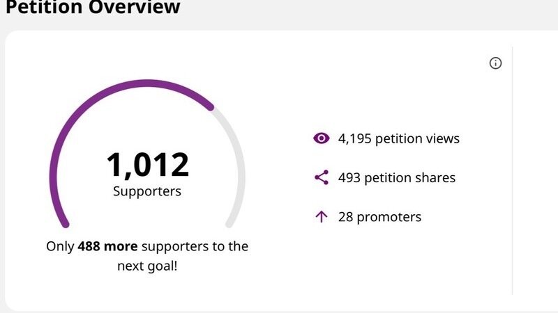 I write to you at this time to report to you that in only 24 hours we have garnered over 1,000 signatures. We have not used boosted posts, advertising or pretty much anything other than Facebook to circulate this. We have not posted it to Twitter/X which would reach far but would engage many many people without a vested interest in our community.