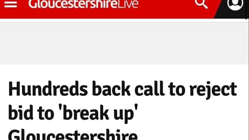The campaign to save Gloucestershire County has been running for just a few days and we are already gaining support. Today we made local news https://www.gloucestershirelive.co.uk/news/gloucester-news/hundreds-back-call-reject-bid-9890610