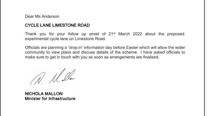 It again does not address any of our concerns and basically says they are going to hold an information day to tell us about the cycle lane plans.