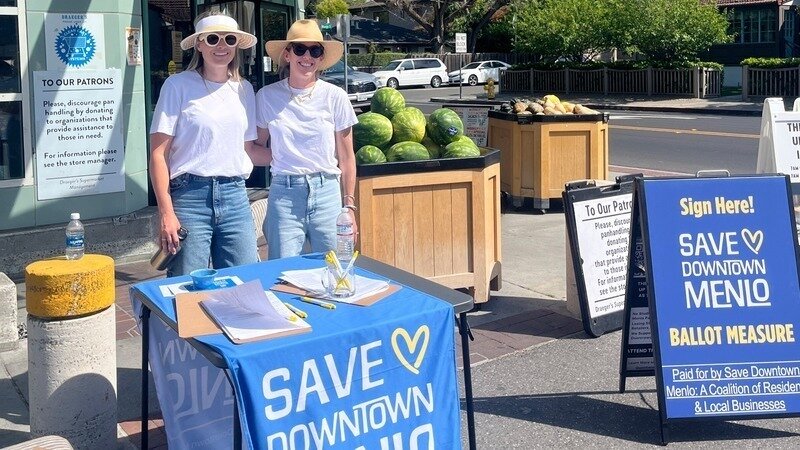 Save Downtown Menlo is collecting physical signatures to qualify a ballot measure that would require voter approval before any downtown parking lots can be sold, leased, or repurposed.