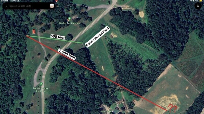 Buffalo – This Developer LIED to WTAE-TV and WPXI that the Buffalo are 1600 feet from development – please see the detail Google Earth map. If our developer misrepresents and lies about verifiable facts, how can we really trust anything? Please see from the Google Earth picture for the 500 feet versus 1600 feet.