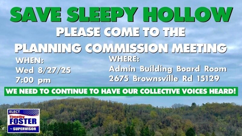 GO TO CHANGE.ORG “STOP THE DEVELOPMENT OF SLEEPY HOLLOW IN SOUTH PARK TOWNSHIP” FOR MORE INFORMATION