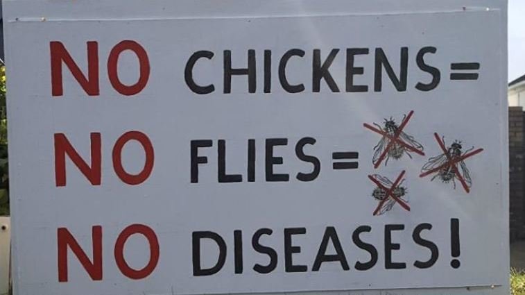 Locals are getting ready with their signs opposing the “INDUSTRIAL MEGA FARM”