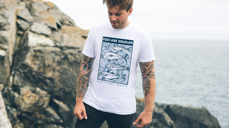 Please support our campaign and spread awareness with this 'Fish Are Wildlife' print, available on certified organic cotton. Free UK shipping Fri 2 - Sun 4 Aug https://blueplanetsociety.teemill.com/