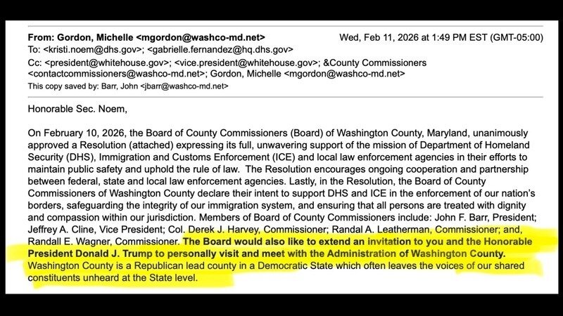 Ethan Wechtaluk of Hagerstown Rapid Response filed a Maryland Public Information Act request seeking all communications between Washington County officials and the federal government related to the DHS-owned warehouse in Williamsport, covering the period from January 2025 through February 14, 2026. Read all about it and see all the documents in our latest Substack post.