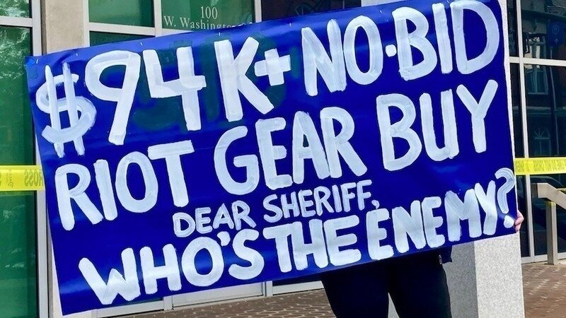 Then, less than 24 hours before the commissioners meeting, a curious agenda item appeared: a vote to purchase $94,000 in riot gear for local law enforcement.