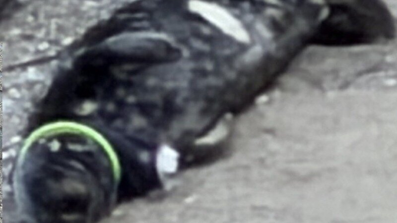 This grainy image was taken in the last few weeks of a seal in Cornwall that is the latest victim of a flying ring entanglement.