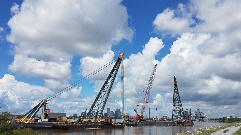 This is what happens when a barge sinks in the river near the mouth of the Industrial Canal.