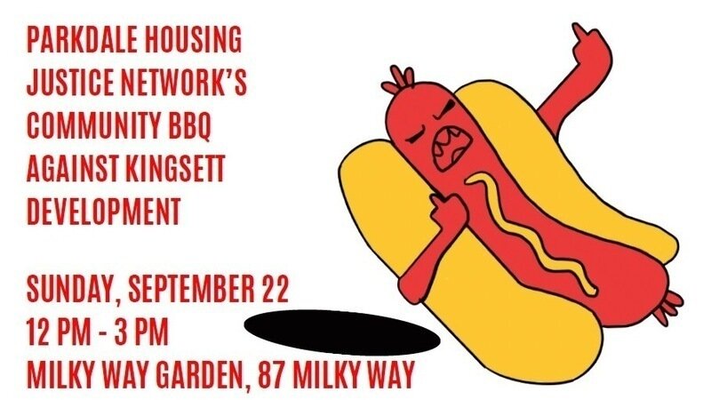 We hope you are doing well as summer winds down! The Parkdale Housing Justice Network is excited to invite you to a Community BBQ this Sunday, September 22nd, from 12 PM - 3 PM at Milky Way Garden, and we want you to be there!