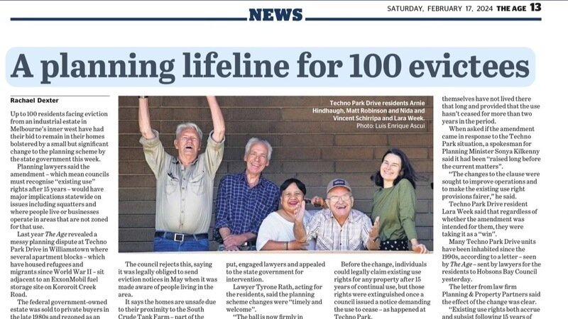 Our fight isn’t over. What happens next depends entirely on Hobsons Bay City Council, who are now fully empowered to recognise our existing use rights based on the more than 15 years people have lived in Techno Park homes, which they have themselves already acknowledged.