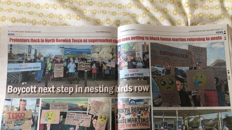 Petition updateStop the netting preventing House Martin’s nesting at North Berwick TescoOver 8,000 signatures, please keep sharing. Thank you. ❤️