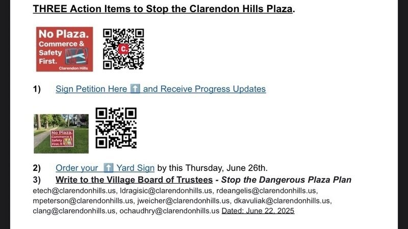 Petition updateStop the Plaza Plan in Clarendon Hills, ILYard Signs $10 - "No Plaza" should cover CH's proven & safe traffic passage. ORDER by June 26