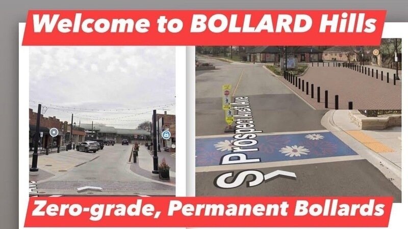 A classic bait-and-switch has just occurred. If you thought the plaza was gone, you are mistaken. Our Village Board clearly stated that the 'compromise' plan is as follows; wipe out our regular slip-lane with a difficult-to-maintain, completely flat expanse of fancy, expensive pavers alongside UGLY permanent parking bollards that will take the place of our normal sidewalk curb.