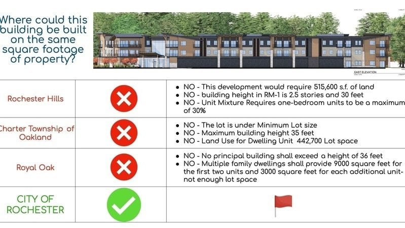 Thank you to everyone that had written and attending City Council and Planning Commission Meetings. We need to keep the pressure on. Your voices are being heard. The developer will soon be presenting a second plan for 88 units. Curious as to why a developer put so many units in Rochester? More information can be found here: https://docs.google.com/presentation/d/1dwfBGUcftuBLmWU5886o9-eloFPGgr9J/edit?usp=sharing&ouid=112850702845159247603&rtpof=true&sd=true