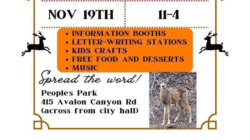Please join us for an afternoon of food, fun, and opportunities to join local efforts here in Avalon to help stop the Slaughter of our beloved deer. We will have tables with information and letters to important decision makers that you can simply sign on site. We will do all the rest to make sure your voices are heard! We will also have Spanish language versions available to ensure ALL members of our community have the chance to make their voices heard. This is a crucial part of our efforts and we KNOW it has made a difference. We will also have packets you can take with you to friends and family who may not have the opportunity to attend the event. In addition, we will have the opportunity to sign up on our volunteer list for future efforts and a chance to contribute financially if you can. We have learned that letters from the citizens of Avalon are especially impactful and we want to let them know how many people here vehemently oppose the heinous plans of the Catalina Island Conservancy to slaughter our deer. And last but not least we will have fabulous FOOD, MUSIC, and a KIDS art table. Come join and help keep up the fight!