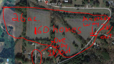 1) Traffic flow on Carlton Drive cannot handle it. The traffic flow is already very heavy because of the nearly 300-350 homes in the 2 subdivisions and houses already in the Carlton Drive area.