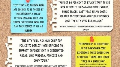 We need to advocate for more compassionate solutions. We call on the Victoria City Council to halt these inhumane sweeps immediately and to invest in long-term strategies that focus on housing first initiatives, increased funding for mental health and addiction services, and community-based support programs.
