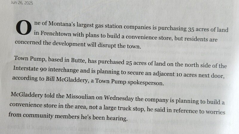 One of Montana's largest gas station companies is purchasing 35 acres of land in Frenchtown with plans to build a convenience store, but residents are concerned the development will disrupt the town.