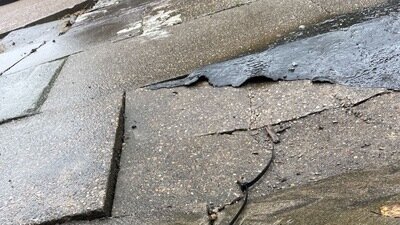 Treverton Street, undeniably a trip hazard, shows a combination of Distress: block cracking, stripping, joint reflection cracking, porthole, amongst other tripping hazards and uneven surfaces.