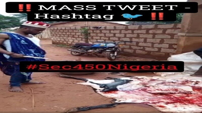 MASS TWEET to the Nigerian Govt and authorities (All of them if possible) provided above with a common hashtag #Sec450Nigeria and the petition link https://chng.it/ggsdcdXHH5 asking why High Chief Enenie nwa ite has been not arrested along with his accomplices till date despite of thousands of mails and demanding the arrest and prosecution of the criminals and his associates immediately. While he still continues to bring new animals to torture and mutilate them and put them to brutal death in the name of black magic !