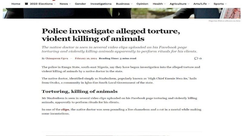 The matter has also made into the national headlines of Nigeria - Please See - https://www.premiumtimesng.com/news/top-news/667315-police-investigate-alleged-torture-violent-killing-of-animals.html