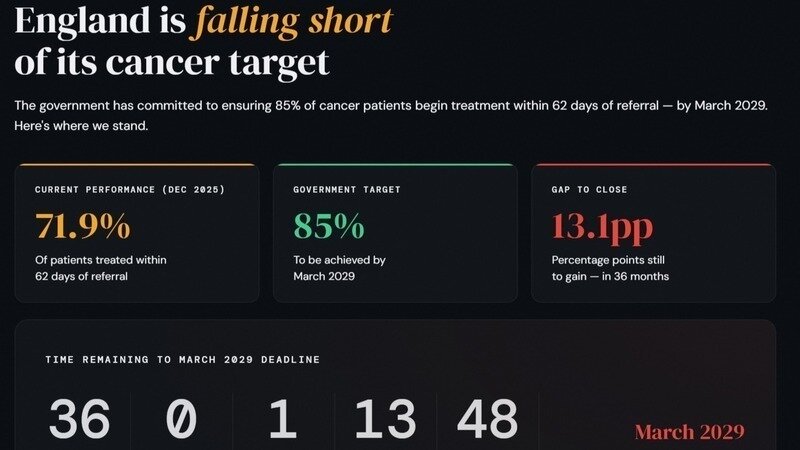 Please click and share our cancer delays tracker - The Government has promised that by 2029, it will meet the target for cancer patients to be treated within 2 months. Our Catch Up With Cancer campaign has launched a new tracker to make sure that happens and to speak up for cancer patients every step of the way. Just by sharing this update, you're helping us campaign to make sure cancer patients no longer face frightening treatment delays.