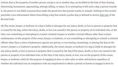 I am calling upon the legislators of Ohio to reconsider these laws urgently. We need protections to ensure that no service animal, or any individual, faces unwarranted threats of violence. I propose that the Ohio legislature conduct an immediate review of these sections to clarify that the use of firearms should not be directed at unarmed individuals and service animals under any circumstances.
