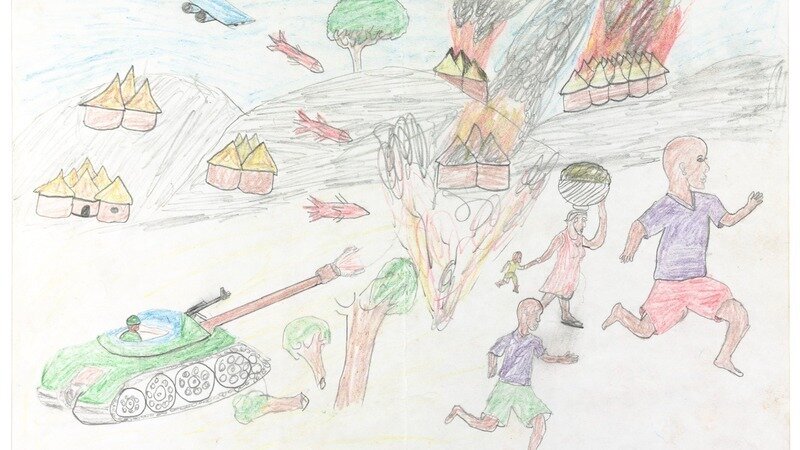 Image above from Sudanese children's drawings 'Wiener Holocaust Library Collections/Courtesy of Waging Peace'