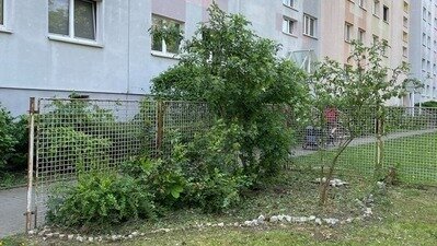 Viele Anwohner:innen haben sich in den letzten Jahren um die Fläche gekümmert: Wir haben den Zaun repariert, Bänke aufgestellt, Pflanzen gegossen und Müll entfernt.