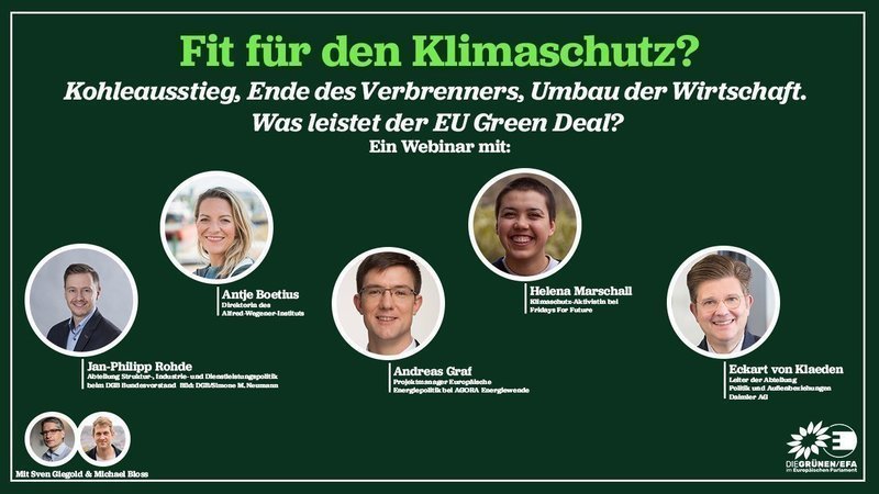 es ist das entscheidende Reformpaket für die Europäische Union, was uns noch auf den 1-5-Grad-Pfad bringen kann. An diesem Mittwoch wird die EU-Kommission aufzeigen ein Paket aus 12 Gesetzen auf den Weg vorstellen. Dabei geht es um komplexe Vorschläge, die darüber entscheiden, ob endlich anspruchsvoller Klimaschutz kommt. Also, was steckt hinter der Reform des Emissionshandels, dem Grenzausgleichsmechanismus, dem Aus für den Verbrennungsmotor, einem zweiten Emissionshandel für Verkehr und Wohnen, der Harmonisierung von Energiesteuern in der EU? Sind die Vorschläge klimapolitisch ambitioniert, ökonomisch vernünftig und sozial gerecht? In diesem Webinar werden wir eine erste Analyse und Bewertung des Klimapakets der EU-Kommission aus unterschiedlicher Perspektive versuchen. Informiert Euch und redet mit!
